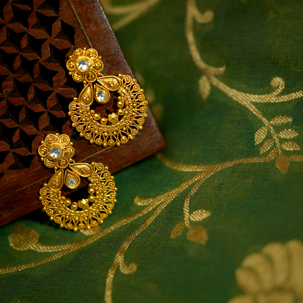 Majestic Kundan Antique Gold Drop Earrings