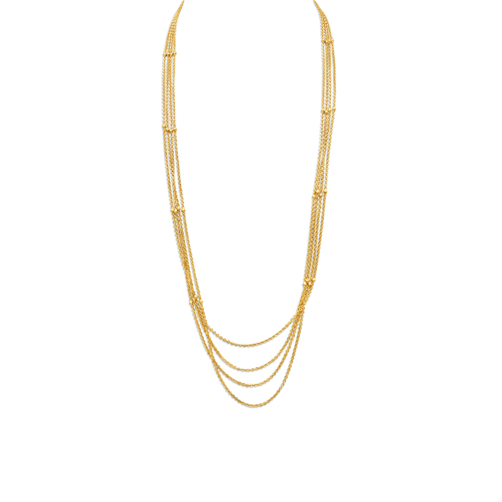 The perfect accessory for your big day, this royal chandra haram crafted in 22 karat yellow gold for the Telugu Bride