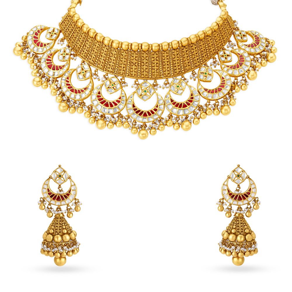 Stately Gold Crescent Necklace Set For The Contemporary Bride